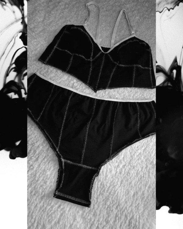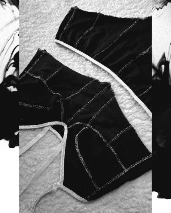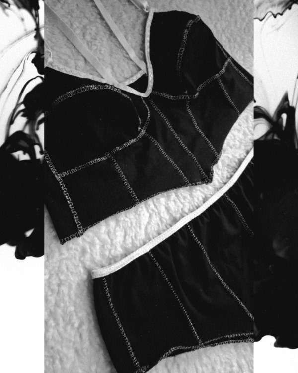 En algodón negro con costuras simil overlock visibleble detalles en blanco