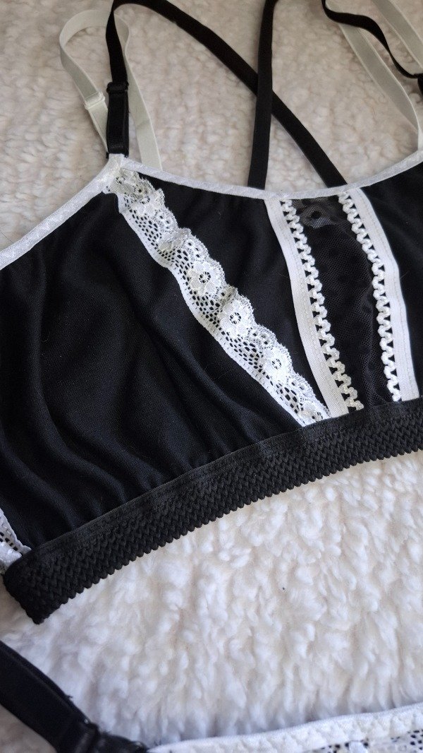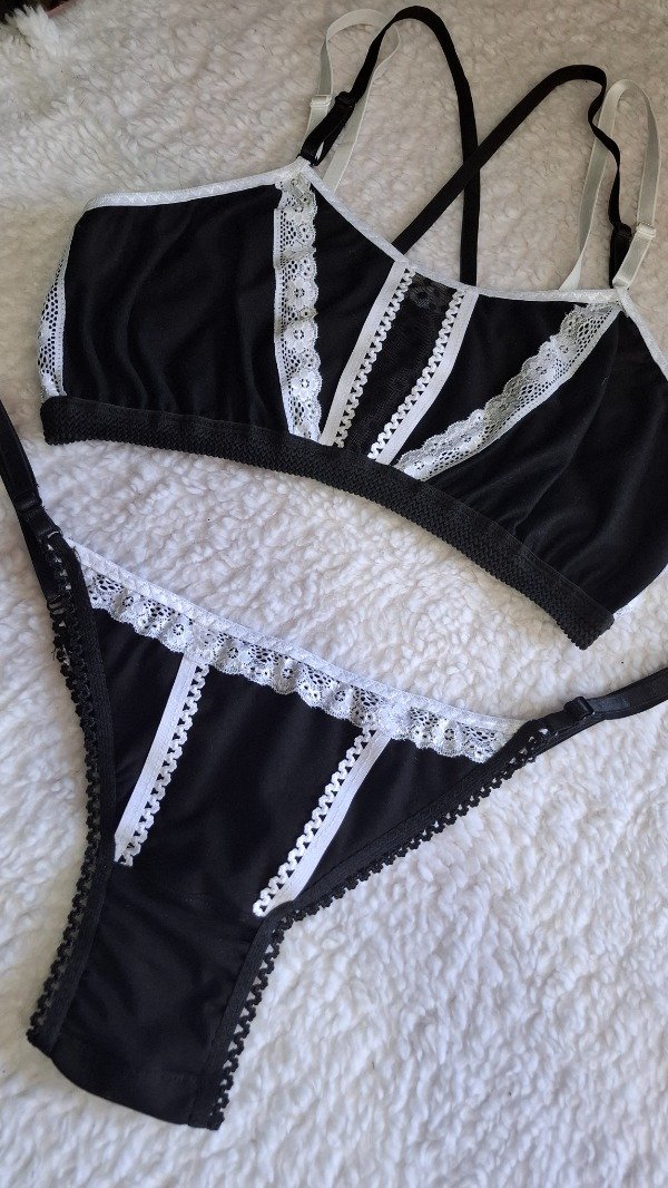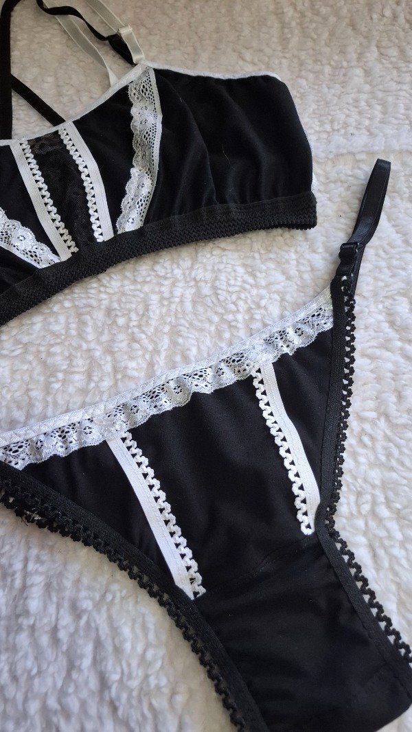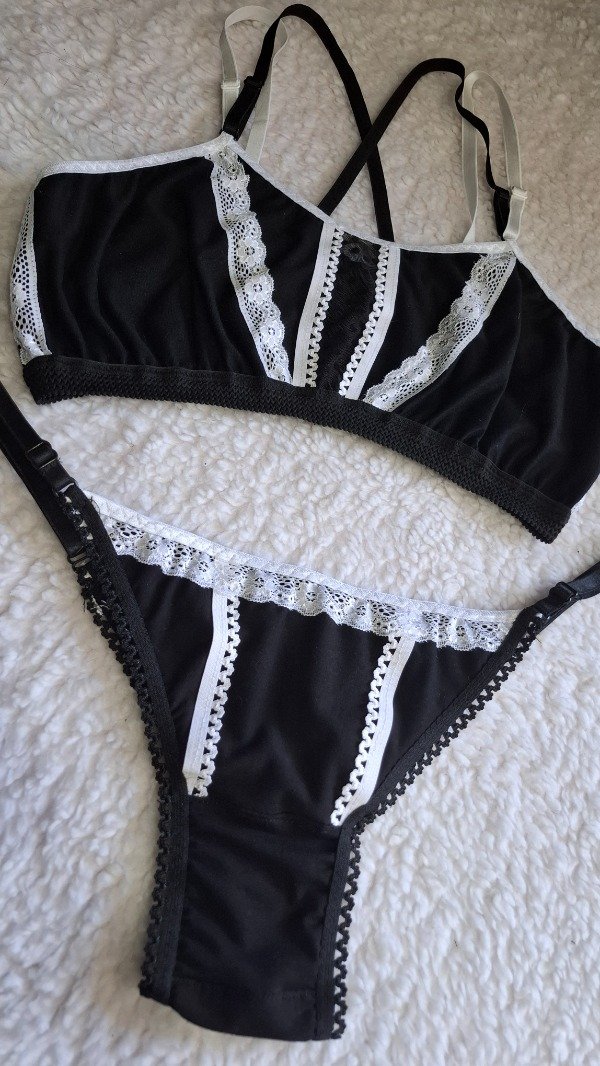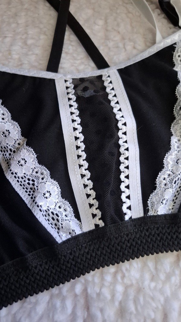 Con deco en elástico picot y puntilla blanca